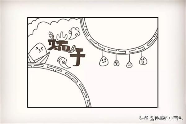 5在主题的旁边也画上两片云朵。用可爱的小粽子装饰一下文字框的下方。