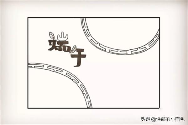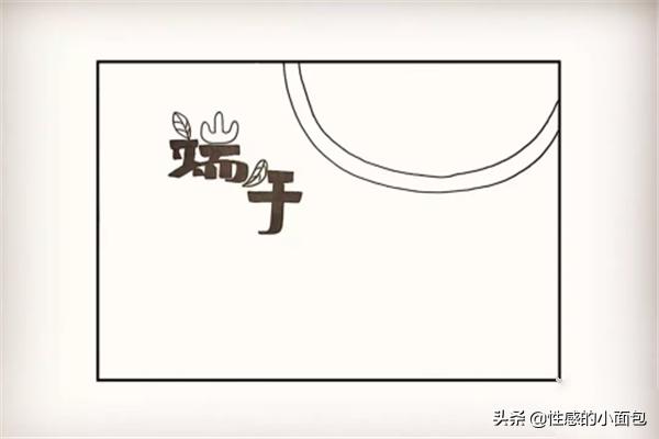 2、接着我们画一个大大的粽子形状的边框,将主题和插图包含在其中,并在画面的左右两侧画上荷叶,注意画出荷叶的纹理。
