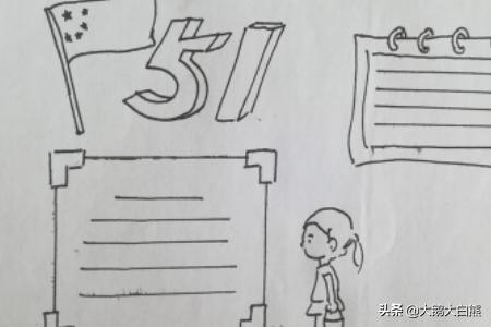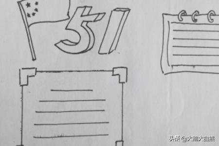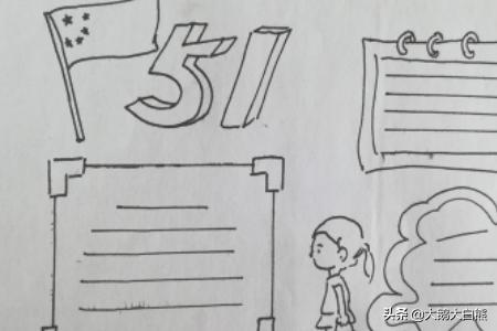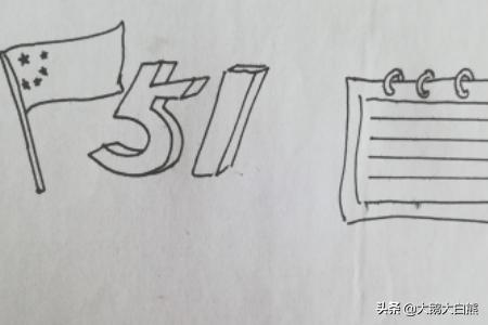 1、首先在纸的左上角画上五星红旗和五一的字体,如图所示。
