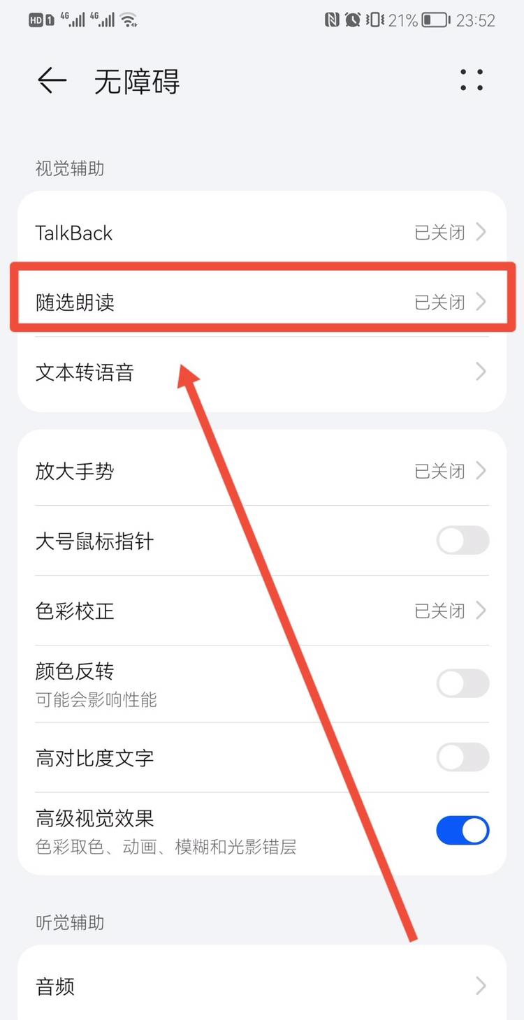 华为手机屏幕朗读功能关闭需要先打开手机上的系统设置,下滑找到辅助功能,点击进入无障碍,最后选择屏幕朗读打开/关闭即可。