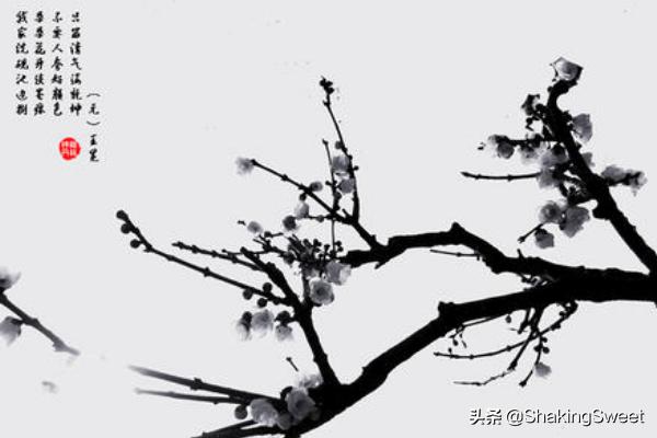 我家画中洗砚池边的梅树,花开朵朵,都是用淡淡的墨水点染而成。它不需要别人夸奖颜色美好,只要留下充满乾坤的清香之气。