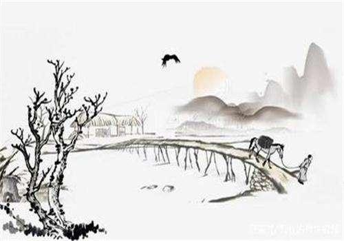 译成白话:暮色四合的秋日,归巢的鸦鸟,立于枯藤老树之上。小桥流水远去,几户人家。远处古道,西风中战士骑着瘦马前行。在这夕阳西下的秋日,思念着远在天涯的人儿,怎不肝肠寸断、伤心欲绝?