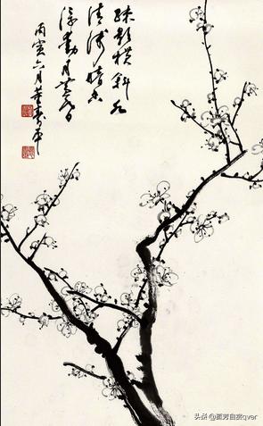 这幅画画的是我家洗砚池旁边的一棵树,每一朵梅花都呈现出淡淡的黑色,没有鲜艳的色彩。我不需要别人夸它颜色多么漂亮,只要它能在天地之间留下清淡的芳香。