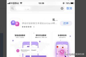 2、在应用商店的搜索框内搜索“翻译器”,找到对应的APP,如下图所示。