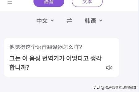 4、韩语翻译结果页面,翻译结果会在语音播放韩语的同时出现一个带有中韩文字的文本框,而在文本框中有一个喇叭按钮,点击可以进行重复的语音播放。